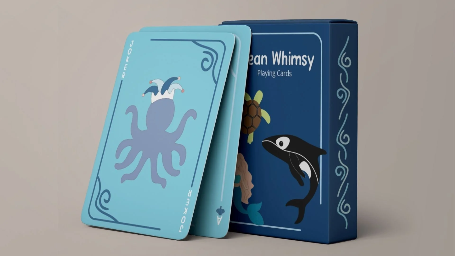 I was tasked with designing a custom deck of cards based on a theme of my choice. I chose a fantasy underwater concept, inspired by the mysterious colors, creatures, and movement of an imagined ocean world. Each card blends playful design elements with a sense of depth and wonder, creating a cohesive deck that feels both magical and immersive.